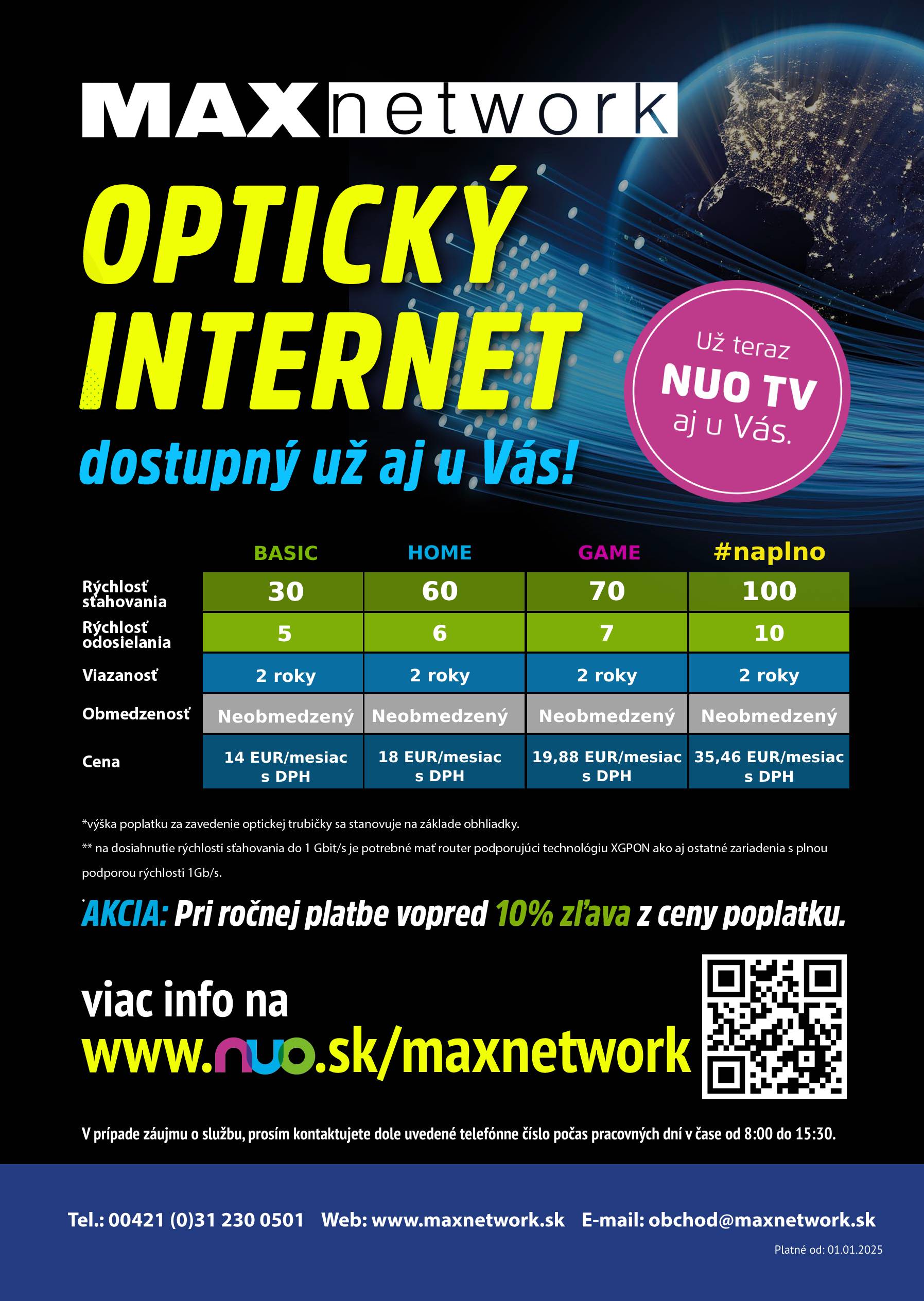 NUO Vám prináša MAXNETWORK. Využívaj všetky výhody NUO a poskladaj si balík služieb podľa svojich potrieb. NUO.sk